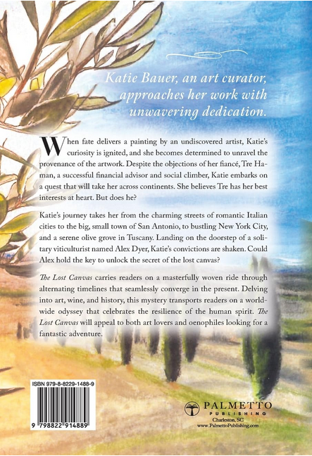 The Lost Canvas carries readers on a masterfully woven ride through alternating timelines that seamlessly converge in the present. Delving into art, wine, and history, this mystery transports readers on a world-wide odyssey that celebrates the resilience of the human spirit. The Lost Canvas will appeal to both art lovers and oenophiles looking for a fantastic adventure.
